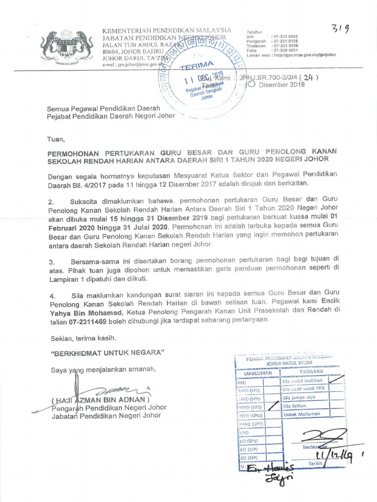 Related : Pertukaran Sekolah Menengah 2019 : Untuk maklumat lanjut, boleh menghubungi pihak bahagian pendidikan menengah mara..